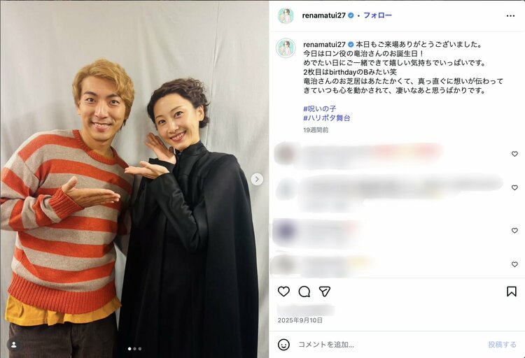 「推し」を演じるということ…松井玲奈が舞台『ハリポタ』ハーマイオニー役で示した“オタクとしての矜持” 松井玲奈 2026.2.18 #松井玲奈 すべての写真を見る 【画像】ロングラン公演中!舞台『ハリー・ポッターと呪いの子』で演じているハーマイオニー・グレンジャー姿の松井玲奈さん 松井玲奈さん ご本人インスタグラムアカウント(@renamatui27)より 【この画像の記事に戻る】 (大宮高史) 1 2 3 4 松井玲奈 (まつい・れな) 俳優 1991年7月27日、愛知県生まれ。O型。2008年デビュー。主な出演作は、映画『よだかの片思い』、NHK朝ドラ『まんぷく』『エール』、大河ドラマ『どうする家康』など。24年3月8日には映画『ゴールド・ボーイ』が公開。18年小説家デビューし、翌年初の単行本『カモフラージュ』を刊行。23年12月より「小説すばる」にて『カット・イン/カット・アウト』を連載中。 女優・松井玲奈が語る人生最大のピンチ「一生懸命服で血を拭いて、前髪で隠したことがあったんです」ブロック塀の上からバク転失敗! #1 松井玲奈がグループ卒業後に感じた大きな変化「自意識みたいなものを手放せた瞬間だった」朝ドラでも大河でもない転機となった作品とは? #2 元日入籍の松井玲奈「サン=テグジュペリと谷川俊太郎が好き」小説家としての顔も持つ才女が語る幸せの真理と未来予想図 #3 「幸せ自慢?」と言われた衝撃が原点…松井玲奈が書き下ろしエッセイ集『ろうそくを吹き消す瞬間』で向き合ったSNS時代の“本当の幸せ” #4 松井玲奈が編集者に止められた“偏愛”…エッセイ集『ろうそくを吹き消す瞬間』でも止められなかった「食」への探求心 #5 「ハリネズミみたいな女でした」松井玲奈が『ろうそくを吹き消す瞬間』で明かした家族の記憶と“構ってほしかった”過去 #6 松井玲奈が『ろうそくを吹き消す瞬間』で明かしたアイドル時代の“ピンク”と涙の理由「可能性を奪われている気がした」 #7