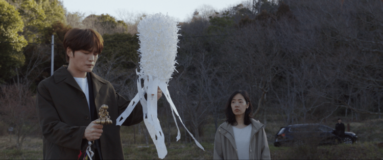 映画『神社 悪魔のささやき』は、神戸の山中にある廃神社で、大学生たちが忽然と失踪。JAEJOONGさん演じる祈祷師(ムーダン)・ミョンジンが失踪事件の調査に乗り出し、“悪しき存在”の正体に迫っていく──という、シャーマニズムホラーだ。
